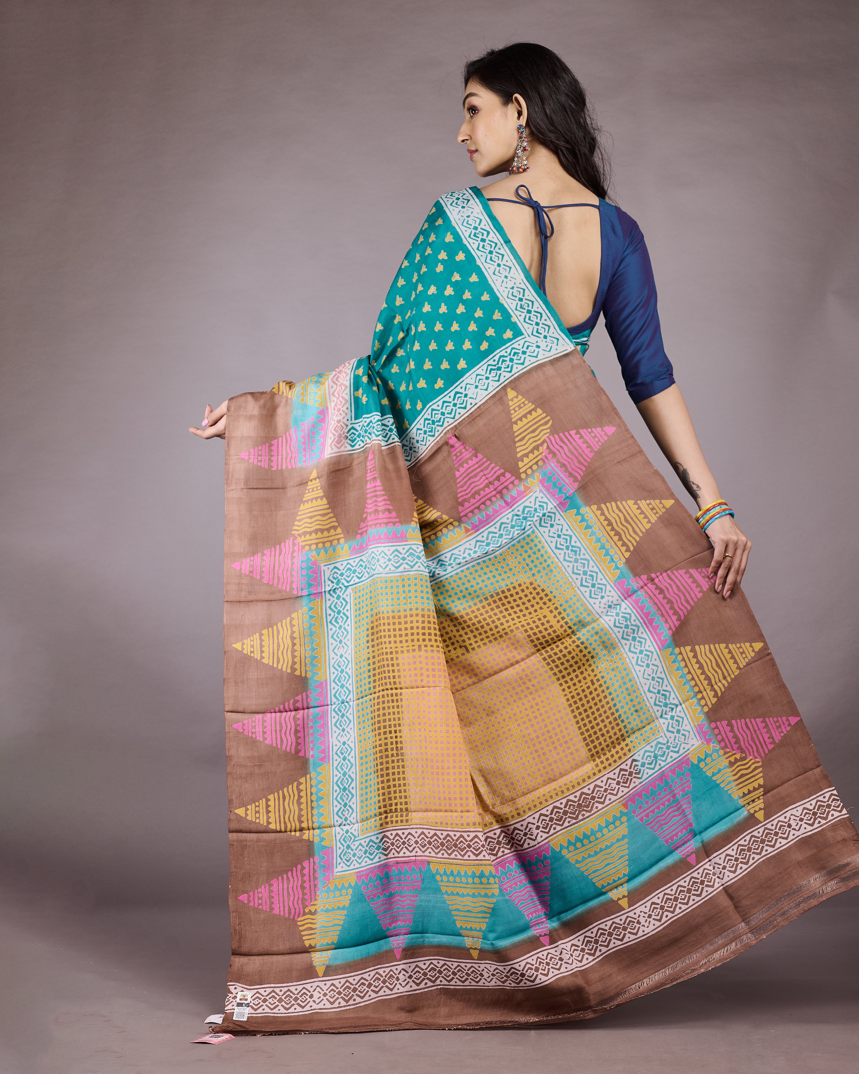 Perfect for special occasions, festive events, or traditional gatherings, this saree stands out with its vibrant colors and captivating patterns, making it a must-have addition to your wardrobe. Elevate your style with the Resham Shilpi Exclusive Silk Block Printed Saree, a true embodiment of craftsmanship and grace.