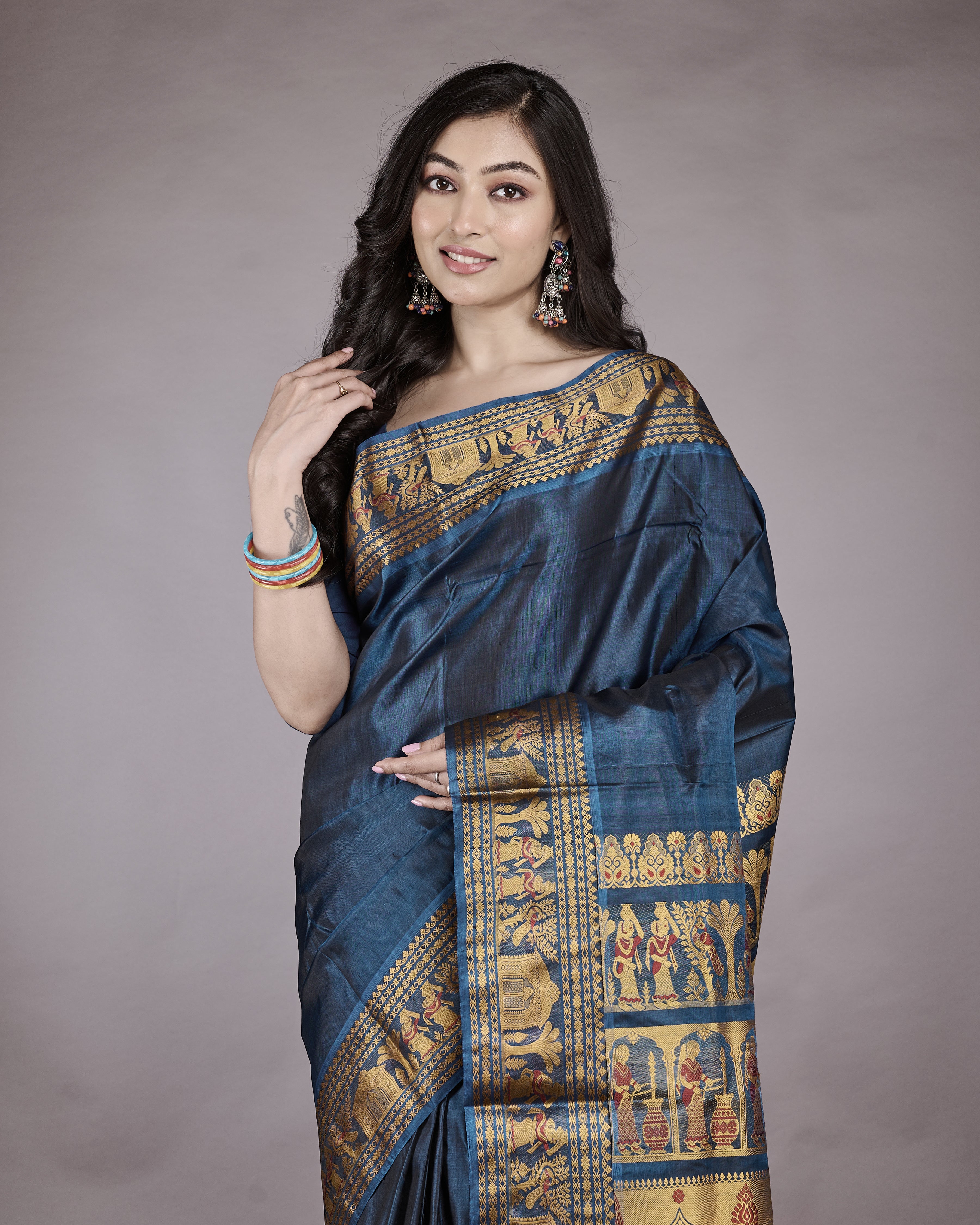Elevate your elegance with the Resham Shilpi Exclusive Mulberry Silk Saree, a timeless piece of craftsmanship that exudes luxury and grace. Made from the finest Mulberry silk, this saree offers a smooth, lustrous finish that catches the light beautifully, ensuring you stand out at every occasion.