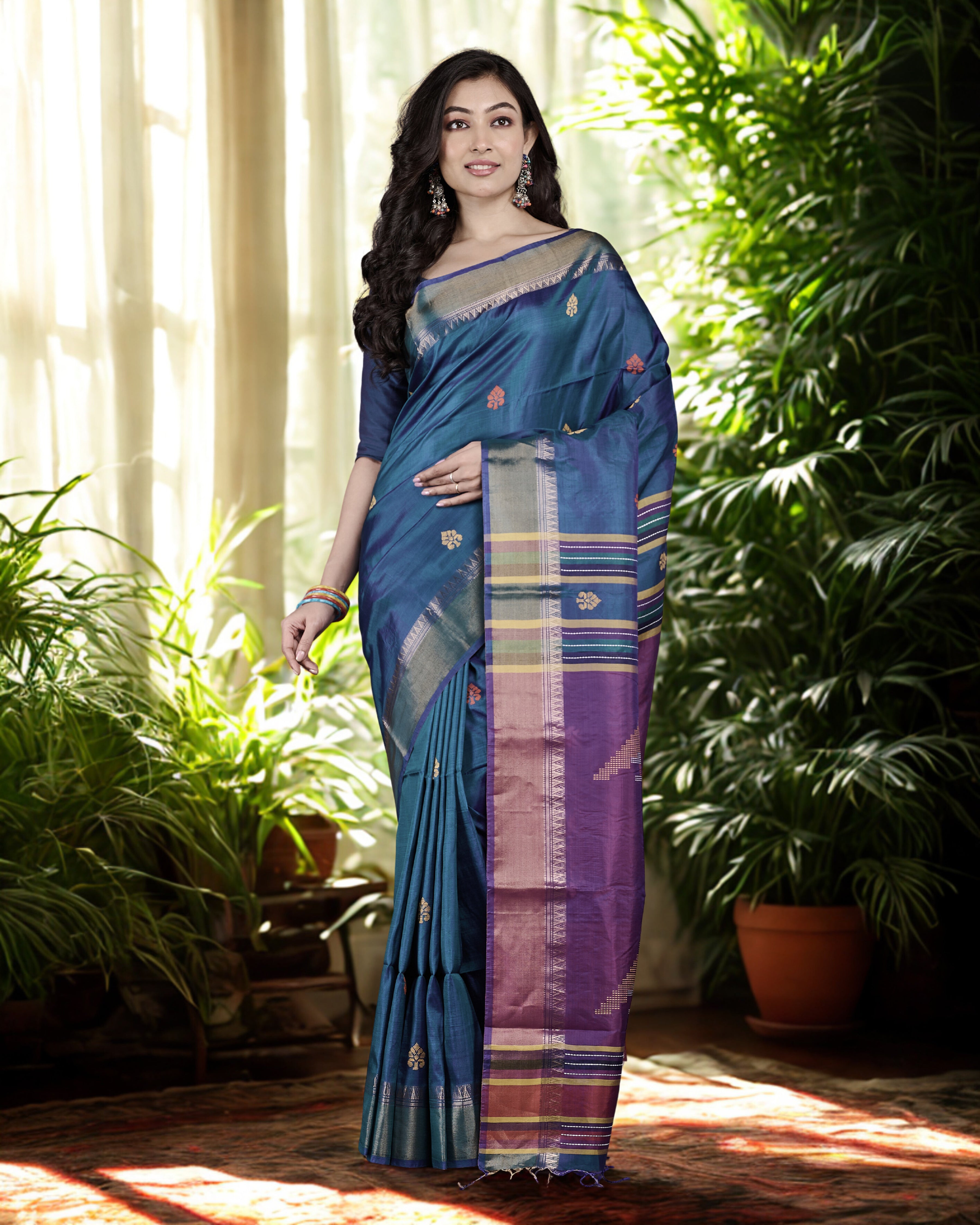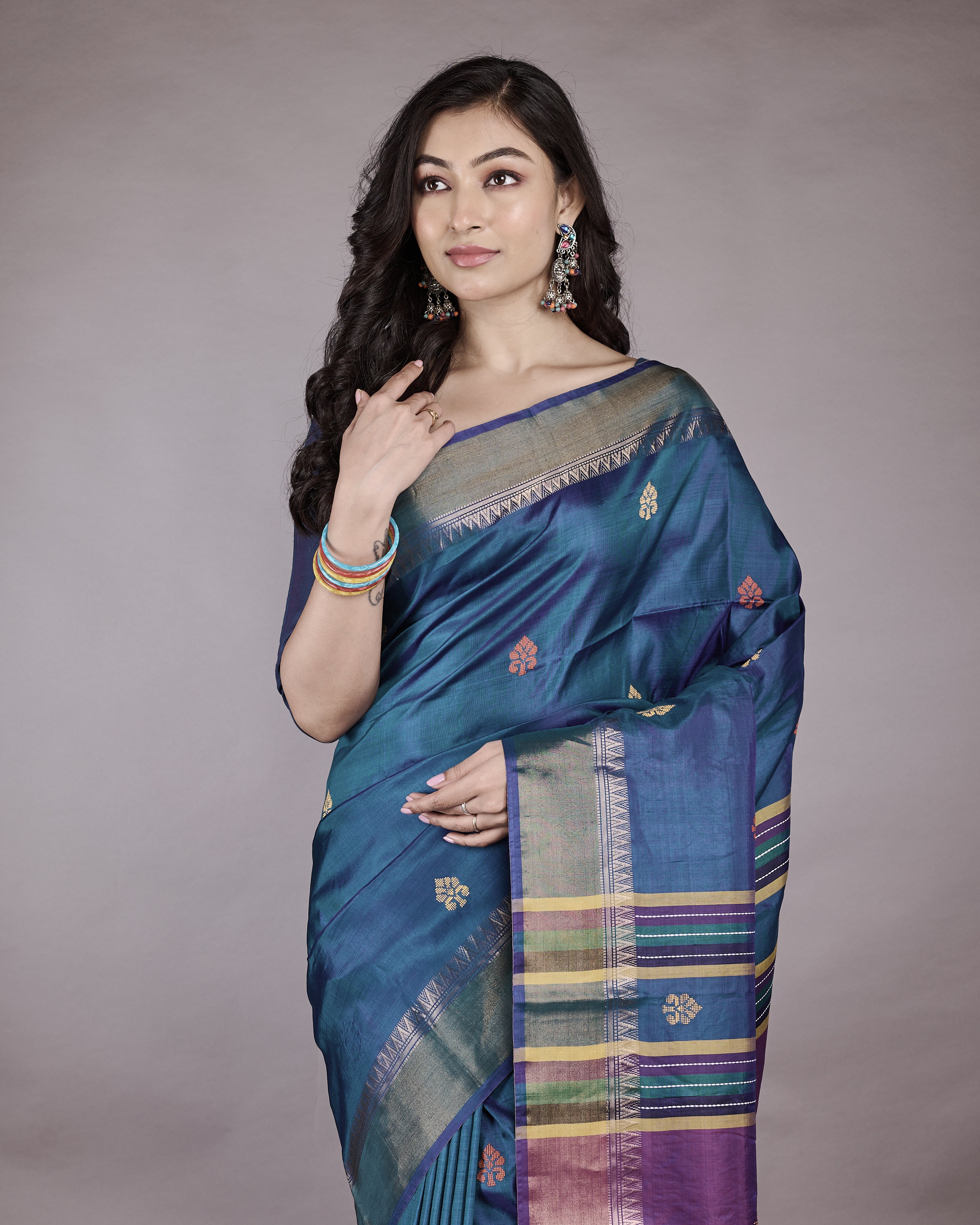 The soft texture of Mulberry silk provides ultimate comfort, while its durability ensures that this saree remains a cherished part of your wardrobe for years to come. Paired with a matching blouse, this saree makes an unforgettable impression, making you the center of attention in any room.