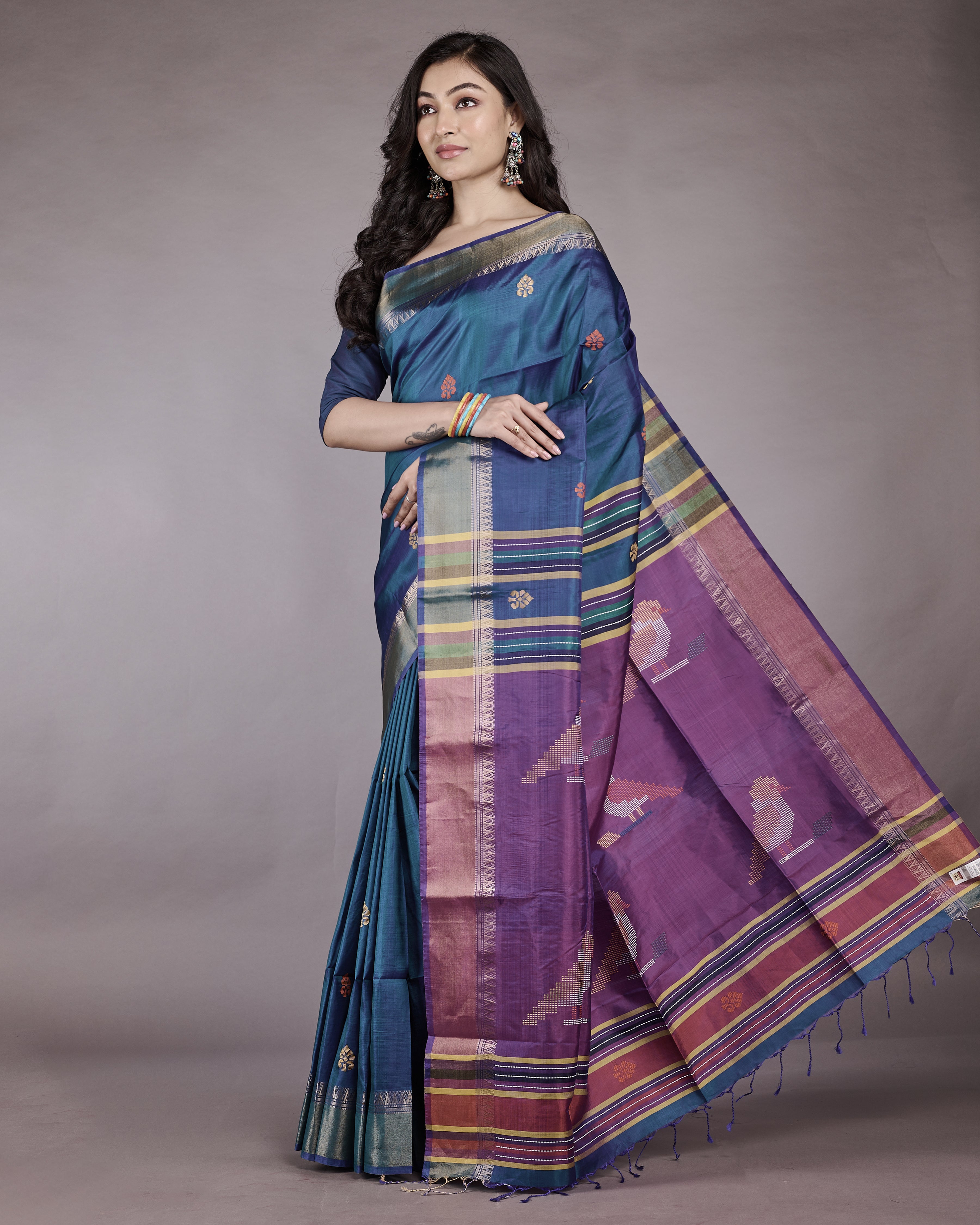The intricate woven design, meticulously crafted by skilled artisans, showcases a perfect blend of traditional artistry and modern elegance. The vibrant colors and delicate motifs weave together a captivating pattern that adds sophistication to your look. Whether you’re attending a wedding, festival, or formal event, this saree is the ultimate statement of refined style.