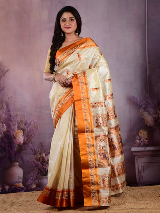 Resham Shilpi Exclusive Hand Painted Mulberry Silk Saree – Artistic Elegance in Every Thread