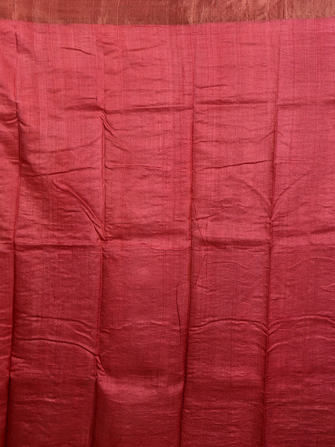 Each piece is hand block-printed by skilled artisans using age-old techniques, creating unique patterns that reflect India’s vibrant artistic legacy. The natural sheen of Tussar silk complements the earthy hues and detailed motifs, while a finely woven zari border lends a regal finish.