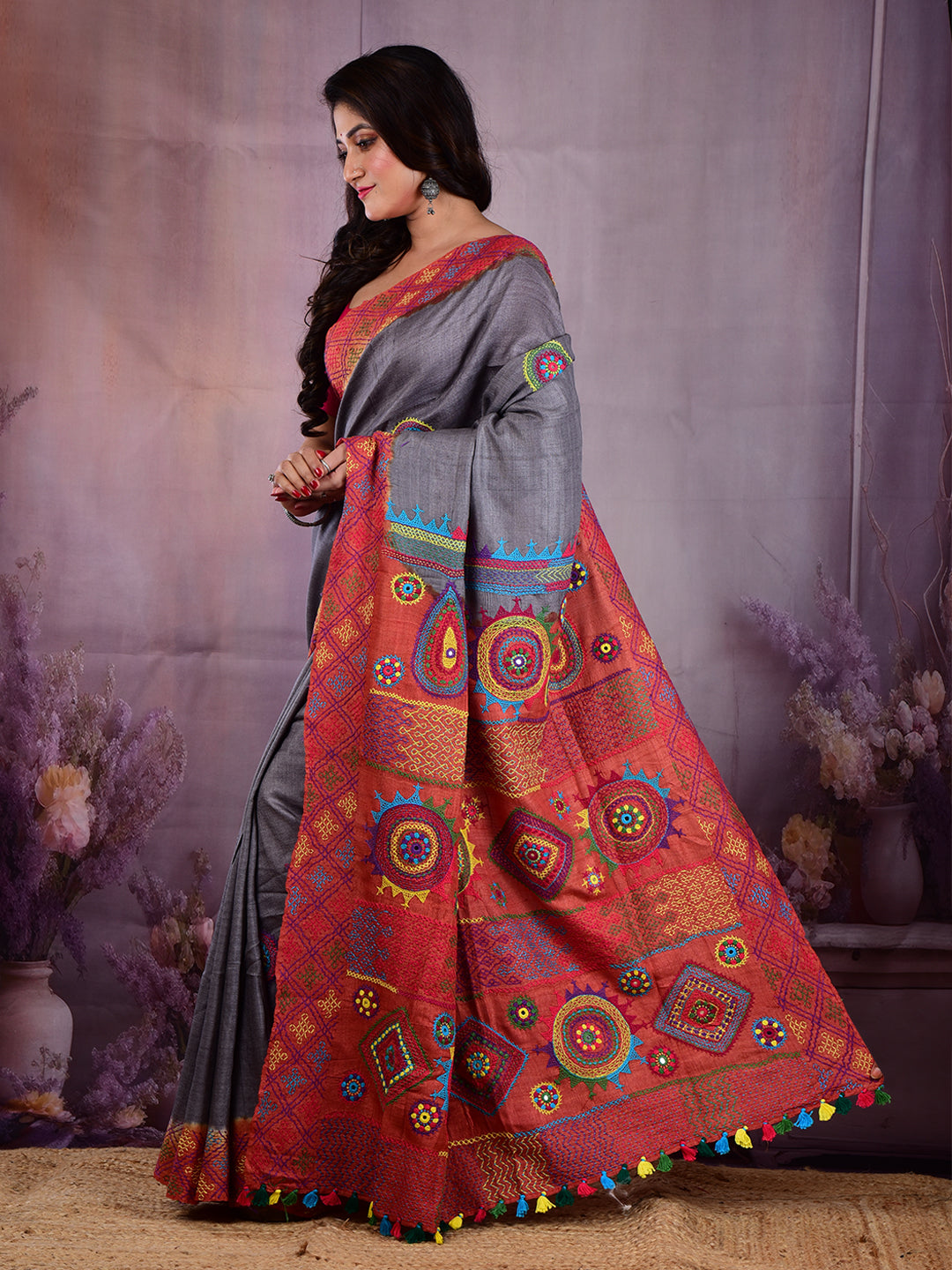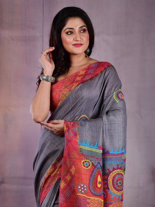 Drape yourself in heritage with the Resham Shilpi Exclusive Tussar Silk Saree—an exquisite celebration of India’s timeless artistry. Handcrafted from luxurious Tussar silk, this saree embodies a natural sheen and rich texture that speaks of quiet sophistication.