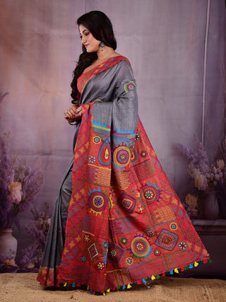 Perfect for festive occasions, cultural gatherings, or elegant evenings, this saree is more than attire—it’s a story woven in silk and thread.